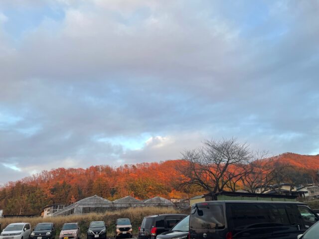 当社のある山形県は秋も深まり、四方の山々が夕日に照らされて、
