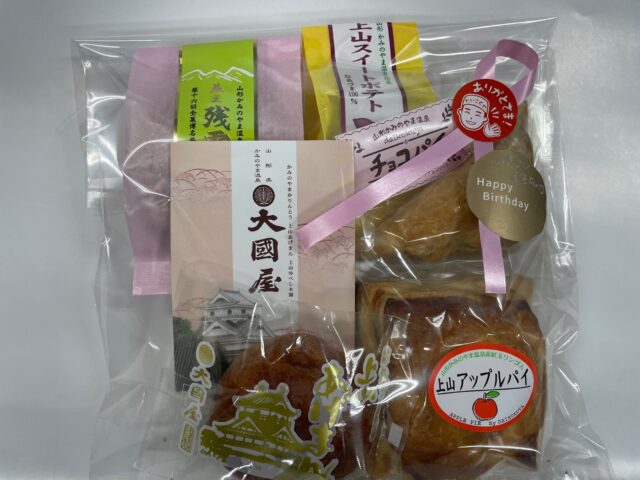 今月も当社社員の誕生日を祝うため、上山市の菓子店の大國屋さんにお菓子の詰め合わせを作っていただきました。